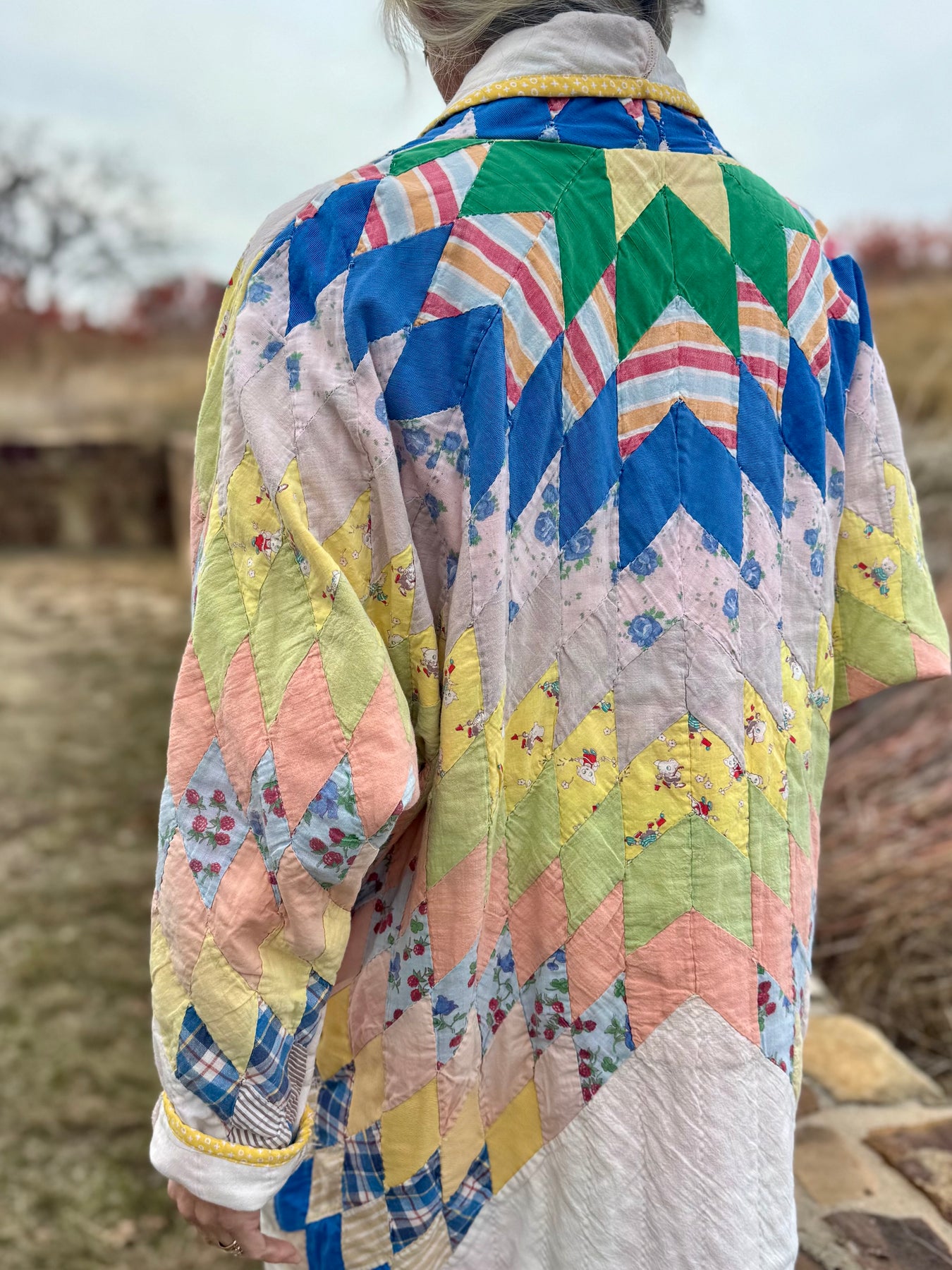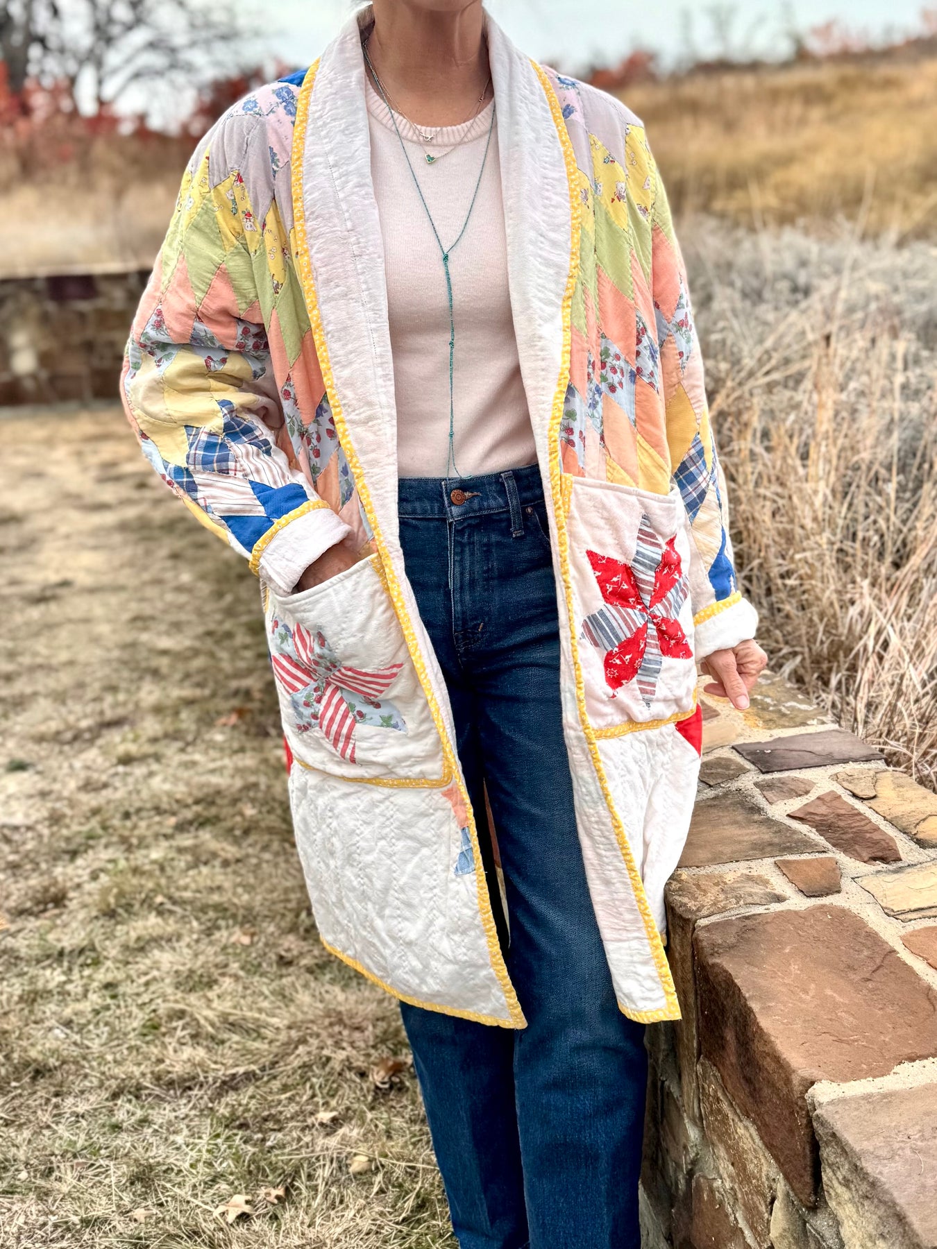 For the gal who refuses to skimp on cozy, this generously sized coat is upcycled from an old lone star quilt. With pockets big enough to hold anything needed on a chilly day, you’ll never be without Chapstick, your cell phone, mittens, and that favorite chewing gum!